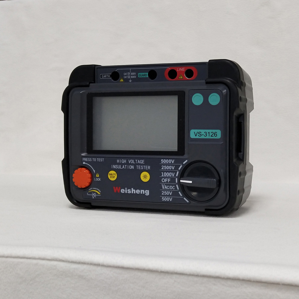 VS-3126Аналогов тестер за изолацияе проектиран за електрически и промишлени тестови приложения, където работните напрежения надвишават 1000 V и се изискват по-високи изолационни тестови напрежения.